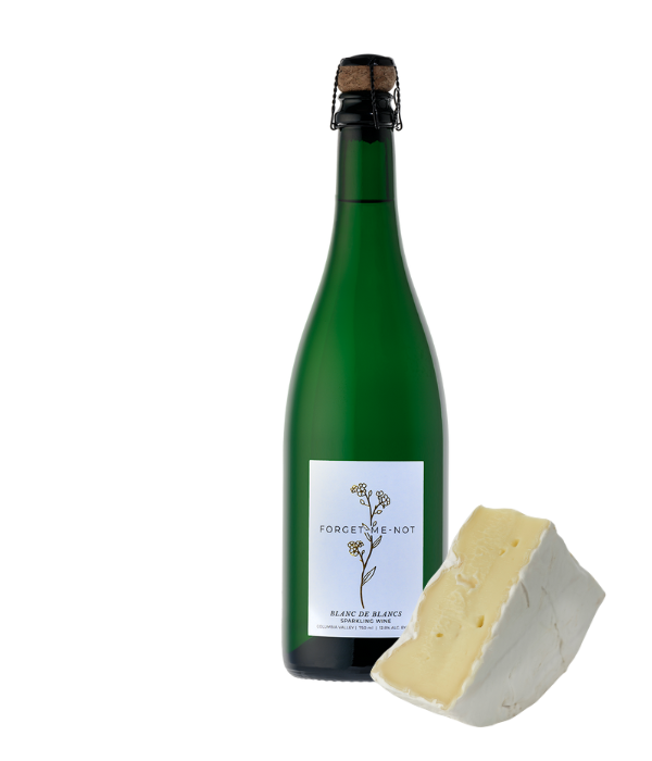 Forget-Me-Not’s high acidity and effervescence cut through the rich, creamy fat, cleansing the palate. The buttery and nutty flavors are present in the cheese and wine, creating a luxurious combination.