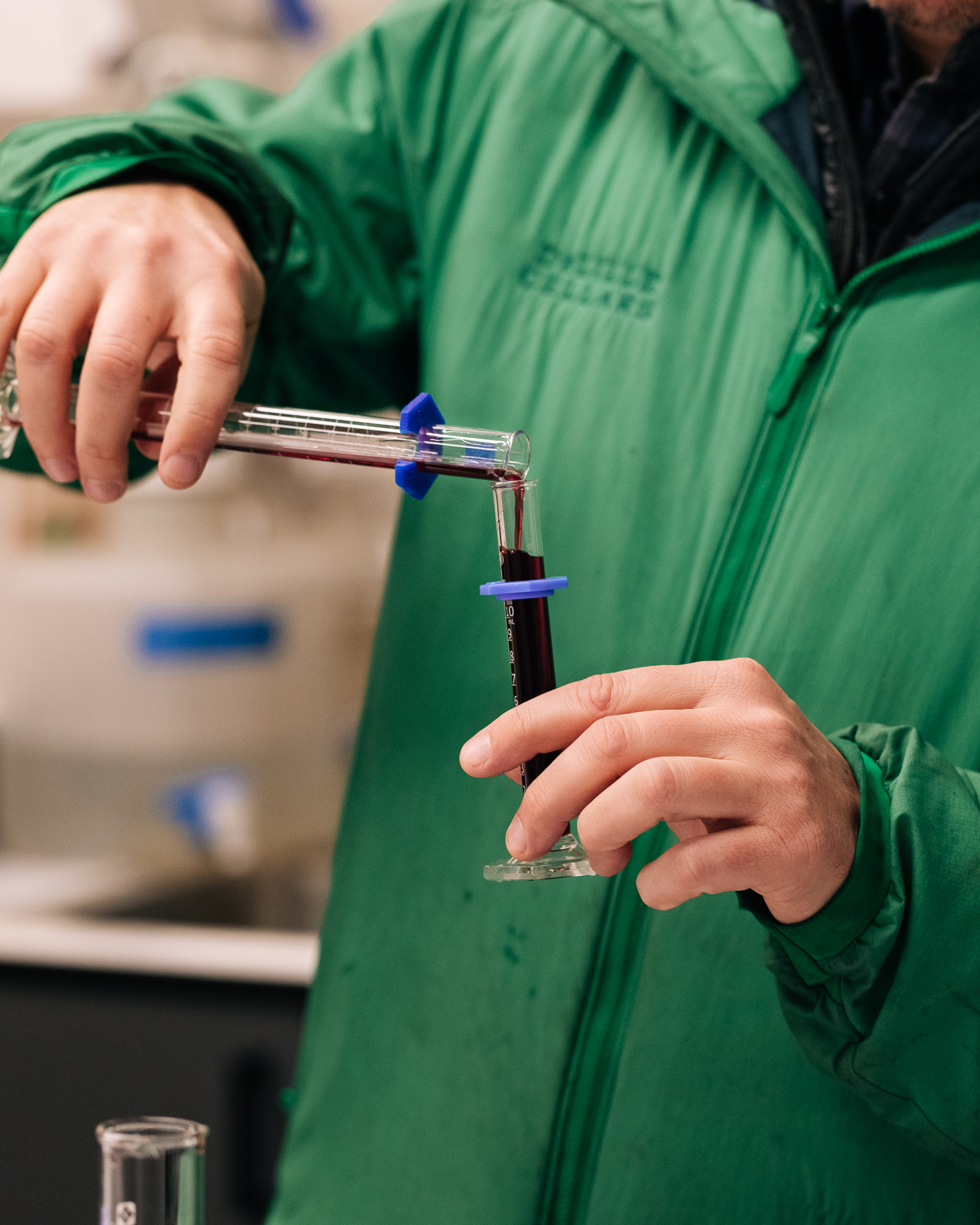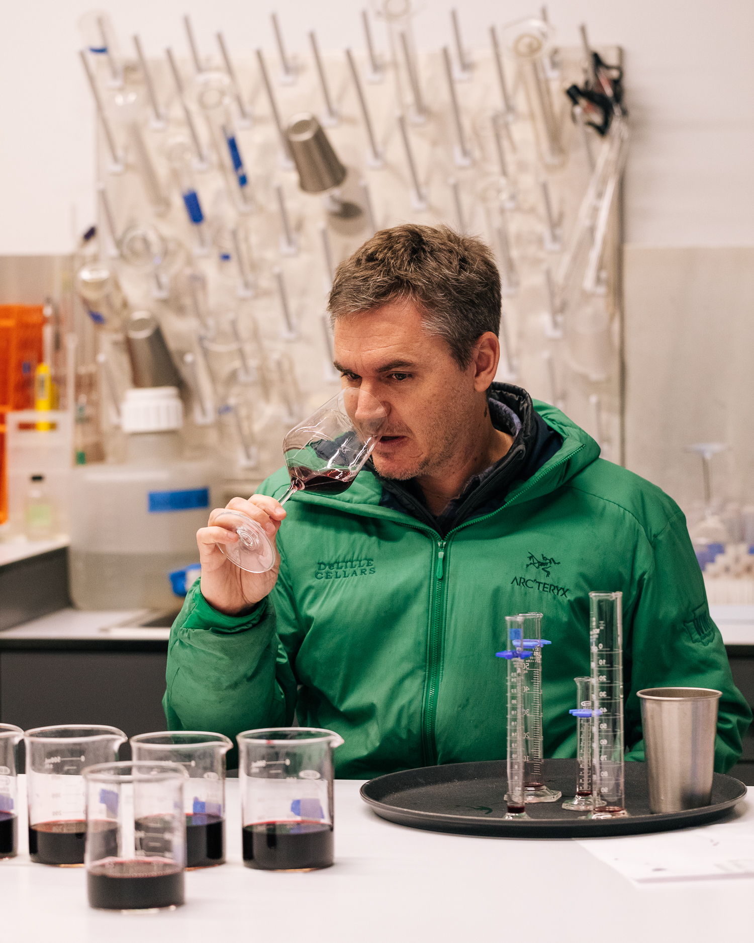 Winemaker Nick Bernstein tasting one potential blends for a 2024 red.