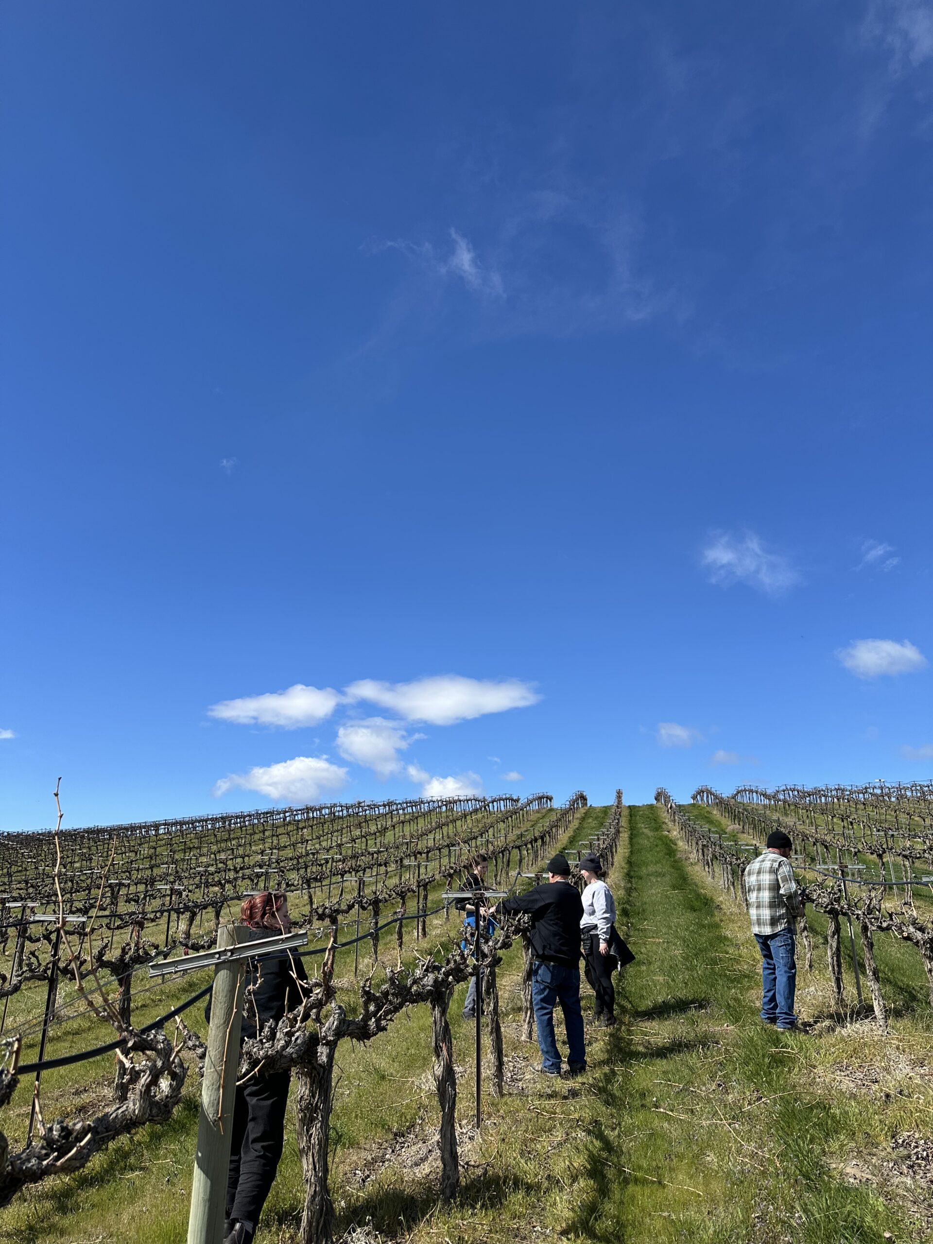 The DeLille and Red Willow teams working together to prune a vineyard block.